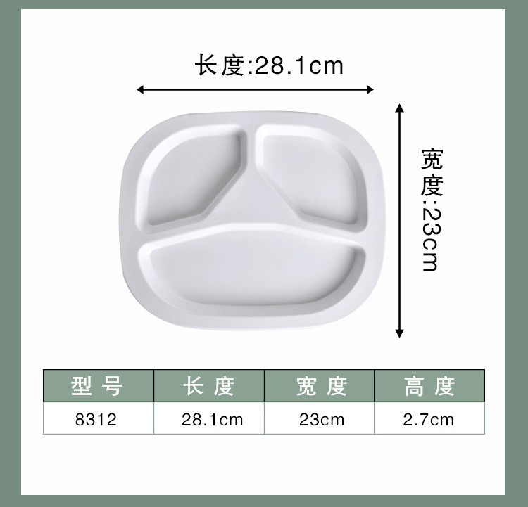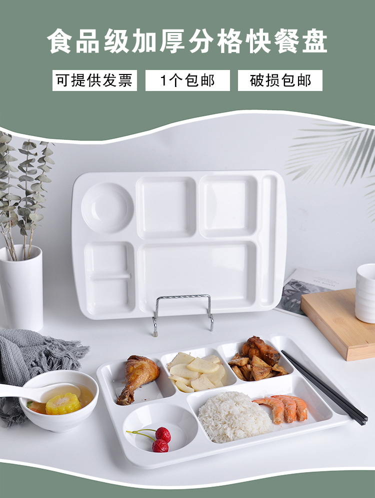Melamine White Multi-Grid Fast Food Plate Rectangular Plastic Plate Five Grid Six Grid School Cafeteria Plate Commercial
